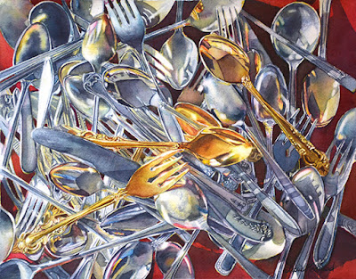 This past week, instead of painting a new painting everyday, I painted on the same one everyday.